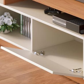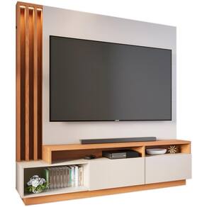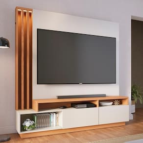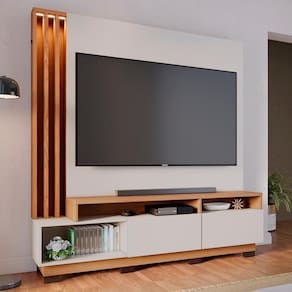 Estante Home Para TV 75 Polegadas Humaita, um móvel para quem deseja ter um verdadeiro cinema em casa, unindo elementos do design minimalista e contemporâneo, ideal para qualquer decoração. Estrutura MDP de 15 mm e 25 mm, proporcionando resistência à peça e mais durabilidade, contando com pintura em acabamento UV (Fosco). Composto por amplo painel, que conta detalhes de ripados decorativos em sua lateral, iluminados por uma canaleta de led (bivolt) que proporcionam uma ambientação sofisticada e aconchegante, bancada com amplo tampo que suporta até 10 kg distribuídos, possibilitando a disposição de decorações, 2 portas basculantes com sistema abre e fecha com pistão a gás e dobradiças metálicas, ideal para organização de aparelhos eletrônicos e demais objetos, possui 3 nichos, furação para passagem de cabos, e opção de com 8 pés de plástico. Painel suporta até 40 kg distribuídos, é ideal para TV de até 75 polegadas. Uma ótima opção para quem busca por um ambiente espaçoso e cheio de personalidade. Este móvel chegará na sua casa separado em 02 volumes.