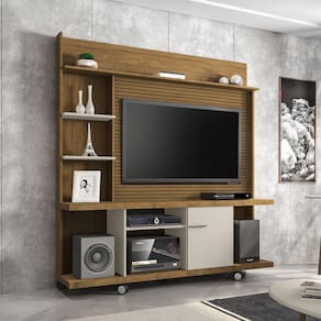 A Estante Home Taurus é ideal para sua sala! Uma estante robusta que possui um designer moderno e inovador, diferente dos demais no mercado, ele renovará totalmente o ambiente de sua sala tornando ainda mais atrativa. Ele possui 5 rodízios (os frontais com trava) que facilitam o seu deslocamento caso necessário, principalmente na hora da faxina. Possui um amplo tampo com espessura de 40mm, nichos, e várias prateleiras que são ideais para acomodar os mais variados tipos de objetos de decoração, bem como aparelhos eletrônicos que complemente sua TV. Acabamento da Porta: Pintura Acabamento da Prateleira: Pintura UV Acabamento dos Pés: Cromado Altura dos Pés: 5 cm Ambiente Principal: Sala de Estar Complexidade da Montagem: Média: pode ser montado por mais de uma pessoa e/ou necessite de maior conhecimento para montagem Cor: Cinamomo/Off White/Ripado Cor do Produto: Cinamomo/Off White/Ripado Cor Flex: Cor Interna: Cinamomo Escala de Brilho: Semi-Brilho Escala de Brilho da Porta: Semi-Brilho Escala de Brilho da Prateleira: Semi-Brilho Ideal para TVs até (Polegadas): 47 Itens Inclusos: 1 Estante e Manual de Montagem. Linha ou Coleção: Taurus Manual de Montagem e Instalação: https://cdn2.madeiramadeira.com.br/tecnico/moveis-bechara/208956-home-taurus-manual-de-montagem-ed001-dez2014-pp01a04.pdf Material da Porta: MDP Material da Prateleira: MDP Material do Puxador da Porta: Alumínio Material dos Pés: Plástico Material Principal: MDP Montagem Flex: Não Necessita Montagem: Sim Origem do Produto: Nacional Peso: 55,39 kg Peso Máximo por Prateleira: 5 kg Possui Espelho: Não Possui iluminação: Não Possui Nichos: 02 Possui Pés: 05 Possui Portas: 01 Possui Prateleiras: 04 Possui Rodízio: Sim Possui Vidro: Não Recomendações de Uso, Manutenção e Limpeza: Recomenda-se limpar o produto com flanela ou pano macio seco, não utilizar produtos abrasivos, desengordurantes, álcool ou solvente. Mantê-lo em lugar livre de umidade e/ou exposição direta ao sol. Rodízio com Trava: Sim Sapatas Niveladoras: Sim Sistema de Montagem: Parafusos, Minifix e Cavilhas. Suporta Até (kg): 50 kg Tipo de Porta: Bater Tipo de Puxador da Porta: Embutido