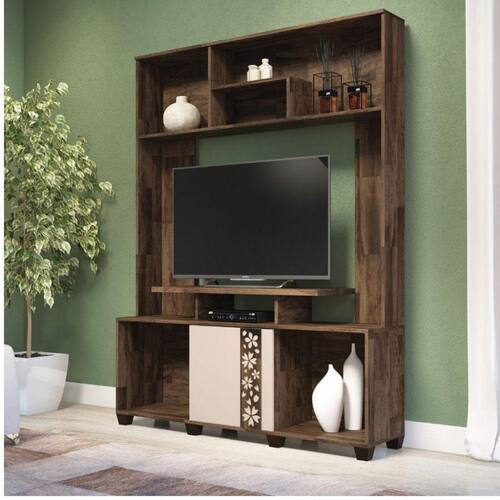 A Estante Milla é uma peça de mobiliário com um design que se destaca por suas linhas retas e modernas, tornando-a uma adição elegante ao ambiente. Sua característica principal é a diversidade de espaços que oferece, proporcionando lugares ideais para a exposição de objetos decorativos e acomodação de aparelhos eletrônicos. Possui 1 porta e um aplique decorativo cortado a laser, adicioando um visual sofisticado.