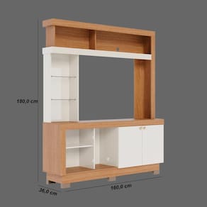 A Estante Valença, com seu design tradicional, foi feita para valorizar ainda mais sua sala. A bancada, que suporta TVs com pés de até 50", possui 3 nichos e 2 compartimentos fechados para você organizar seus objetos, aparelhos eletrônicos e até subwoofer. Há ainda nichos na parte superior e uma torre lateral com 2 prateleiras de vidro que, além de trazer beleza ao produto, são ideais para você expor seus itens de decoração favoritos. Tudo isso em combinação de cores únicas que deixarão seu ambiente elegante, com qualidade Colibri Móveis.