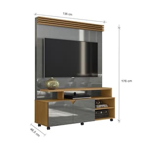 Estante Home Berlim para TV até 60 Polegadas 2 Portas Prateleira e Rodízio Cinza Perolizado/Tauari - Lukaliam