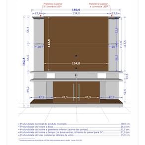 Dimensões: Altura: 183 cm Largura: 180 cm Profundidade: 38,5 cm Peso: 68,88 Kg