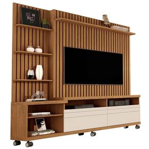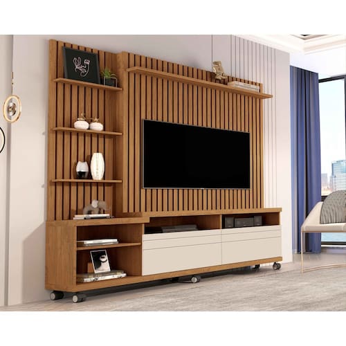 Um conjunto perfeito para sua casa. Com prateleira para sua decoração e nichos para seus equipamentos eletrônicos, vai trazer para a seu ambiente um toque de aconchego e elegância. O painel ripado real deixando-o sofisticado. O rack espaçoso de design moderno. Pés em Rodizio dando mais segurança ao rack. Este conjunto foi pensado para você que gosta de beleza e sofisticação para seu lar.