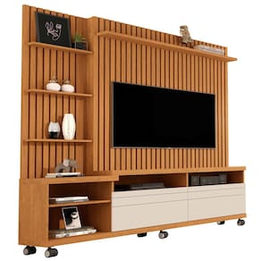 Um conjunto perfeito para sua casa. Com prateleira para sua decoração e nichos para seus equipamentos eletrônicos, vai trazer para a seu ambiente um toque de aconchego e elegância. O painel ripado real deixando-o sofisticado. O rack espaçoso de design moderno. Pés em Rodizio dando mais segurança ao rack. Este conjunto foi pensado para você que gosta de beleza e sofisticação para seu lar.