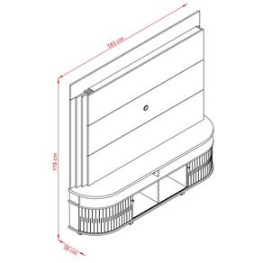 Características: 2 Portas flexíveis em MDF 4 Nichos 6 Pés poliestireno Acabamento pintura DIP Estrutura em MDP Painéis em MDP de 15 e 25mm Painel com detalhes em painéis sobrepostos Peso total suportado 35 kg Puxadores em poliestireno cromado Sistema de fixação Girofix Suporte para TV de até 65 polegadas Tampo e base com detalhes curvos