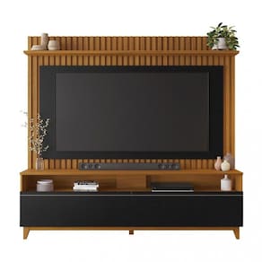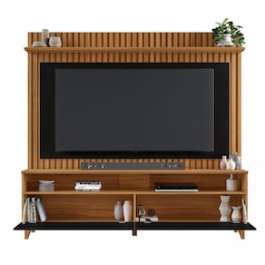 A Estante Home para TV até 65 Polegadas Ripado 2 Portas NT1340 Notável Móveis transforme sua sala de estar, os ripados de 6mm conferem um toque contemporâneo, ao passo que o painel sobreposto acrescenta profundidade ao ambiente. Com um acabamento angular que destaca sua elegância, este móvel representa uma escolha moderna e sofisticada. As portas, equipadas com pistão a gás, proporcionam praticidade, enquanto os robustos pés em madeira maciça asseguram estabilidade e durabilidade.