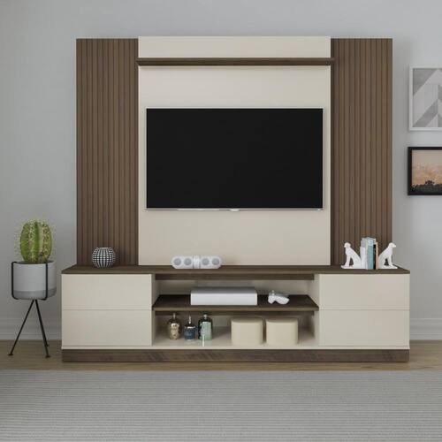Seu design foi desenvolvido para quem busca agregar charme ao ambiente. Seu painel é ideal para Tv de até 65 polegadas, suas prateleiras são perfeitas para decorações e eletrônicos. Conta com 2 portas articuladas, e seu material é em MDP de 15 mm de espessura.