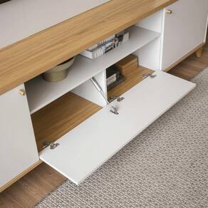 Com 2,00 metros de largura, a estante home Munique se adapta bem a diversos tipos de espaços, oferecendo amplo espaço para eletrônicos, itens de decoração e muito mais.
