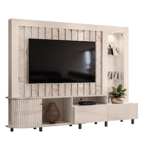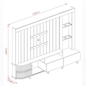 Home Theater Le Mans, um produto robusto e elegante que vai se tornar a estrela da sua sala de estar! Com 2,425m de largura, ele suporta TVs de até 70 polegadas. Um destaque nesse home é seu painel que traz o conceito do ripado com chapas em diagonal, que proporciona volumetria e a ideia de movimento. O requinte fica por conta das prateleiras de vidro 5mm, que combinam com o LED, trazendo um charme e iluminação para o ambiente. Já a organização fica por conta das 2 gavetas com corrediças telescópicas e seus nichos. Trouxemos nesse móvel uma inovação, e que ainda não foi visto no mercado brasileiro de móveis. A porta que faz curva! Uma porta em MDF deslizante e flexível acompanha as curvas da base e do tampo. Confira as cores disponíveis e traga inovação e sofisticação ao seu lar. Acabamento da Gaveta: Pintura Texturizada UV Acabamento da Porta: Pintura UV Acabamento da Prateleira: Vidro Acabamento dos Pés: Pintura Acompanha Lâmpada: 01 Ambiente Principal: Sala de Estar Complexidade da Montagem: Média: pode ser montado por mais de uma pessoa e/ou necessite de maior conhecimento para montagem Cor: Calacata/Off White Cor do Produto: Calacata/Off White Escala de Brilho: Semi-Brilho Escala de Brilho da Gaveta: Semi-Brilho Escala de Brilho da Porta: Semi-Brilho Escala de Brilho da Prateleira: Não Possui Gaveta com Chave: Não Ideal para TVs até (Polegadas): 70 Itens Inclusos: 1 Estante Home, Kit Ferragens e Manual de Montagem Manual de Montagem e Instalação: https://product-hub-prd.madeiramadeira.com.br/860056/documents/4111a32e-bdb5-4c56-bb83-8603162a53c1435110652esquemademontagem.pdf Material da Gaveta: MDP Material da Porta: MDP Material da Prateleira: Vidro Material do Puxador da Gaveta: MDP Material dos Pés: MDP Material Principal: MDP Necessita Montagem: Sim Origem do Produto: Nacional Peso: 97.5 Peso Máximo por Gaveta: 7 Peso Máximo por Prateleira: 5 Possui Espelho: Não Possui iluminação: Sim Possui Nichos: Não Possui Pés: 09 Possui Portas: 02 Possui Prateleiras: 02 Possui Rodízio: Não Recomendações de Uso, Manutenção e Limpeza: Para a Limpeza Utilizar Um Pano Limpo e Seco. Não Limpar Com Produtos Abrasivos ou Escovas;não Deixar Exposta à Luz do Sol Diretamente Pois Isso Irá Diminuir a Vida Útil do Produto;este Produto Não é Recomendado para Ambientes Externos Onde Possa Receber Chuva. Sapatas Niveladoras: Não Sistema de Montagem: Girofix Suporta Até (kg): 40 Tipo de Corrediça da Gaveta: Metálica Telescópica Tipo de Dobradiça/Corrediça da Porta: Plástica Tipo de Porta: Correr Tipo de Puxador da Gaveta: Embutido Tipo de Puxador da Porta: Embutido Ean: 7909903380901