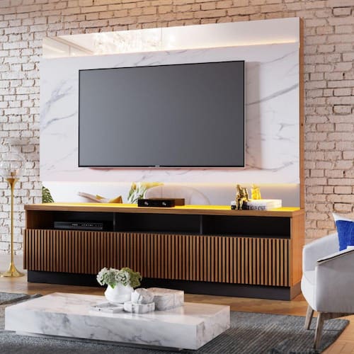 A Estante Home Marajó traz o que há de mais atual em decoração de interiores. Os ripados das portas basculantes com pistão a gás são produzidos artesanalmente e fixados um a um. A iluminação LED em todo painel refletindo no espelho proporciona uma ambientação sofisticada e aconchegante. Além disso seu painel suporta tvs de até 70 polegadas e o tampo da bancada é engrossado e tem 40 mm de espessura. Um produto desenvolvido para pessoas exigentes que valorizam um design sofisticado e elegante, com toda a qualidade que a Colibri oferece.