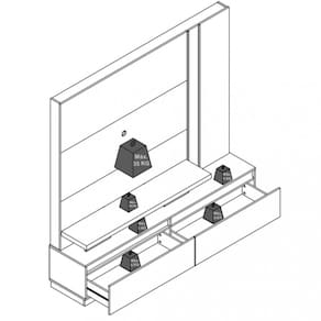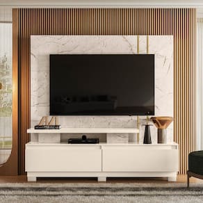 Características: 2 Gavetas grandes 1 Prateleira Corrediças telescópicas Estrutura em MDP Possui pés Painéis em MDP de 15 e 40mm Perfis com acabamento em Hot Stamping Peso total suportado 65 kg Pintura através do método DIP Sistema de fixação Girofix Suporte para TV de até 75 polegadas
