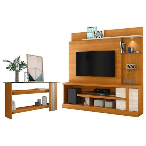 Estante Home Theater Alan com Aparador Frizz Cinamomo Off White - Madetec