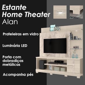 Estante Home Theater Alan com Pés Calacata Off White – Madetec
