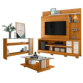 Começou a montar sua sala de estar? Então apresentamos para você este belo conjunto composto pela estante home theater da linha Alan, aparador e a mesa de centro da linha Frizz. A estante possui uma porta, perfeita para armazenar seus acessórios. Além disso, conta com duas prateleiras de vidro, conferindo leveza ao design, e mais duas prateleiras adicionais para colocar seus aparelhos eletrônicos e decorações, possuindo ainda dois nichos amplos. Equipado com uma luminária LED cria um ambiente aconchegante. Seu design robusto, os pés oferecem estabilidade ao móvel. Já o aparador conta com tampo em vidro proporcionando um toque de sofisticação. Com duas prateleiras espaçosas, ideal para a organização dos itens. Completando o conjunto, a mesa de centro também possui o tampo em vidro. Conta com uma prateleira inferior, perfeita para acomodar seus acessórios. Fabricados pela Madetec, são desenvolvidos em MDP garantindo mais durabilidade e resistência. Esse conjunto cria um ambiente elegante e charmoso, perfeito para quem busca unir estilo e praticidade. Confira e garanta o seu!