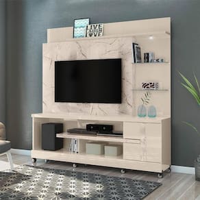 Estante Home Theater Alan com Rodízios Calacata Off White – Madetec