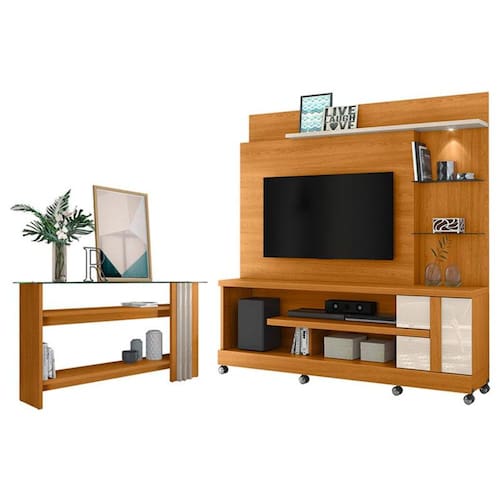 Estante Home Theater Alan com Rodízios e Aparador Frizz Cinamomo Off White - Madetec