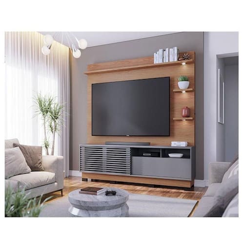 Estante Home Theater Ambiente Campeche Com Pés Freijó Cinza Acetinado - Colibri