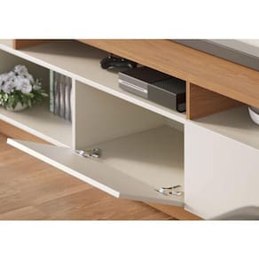 Estante Home Theater Humaita Ambiente Off White Matte Freijó - Colibri