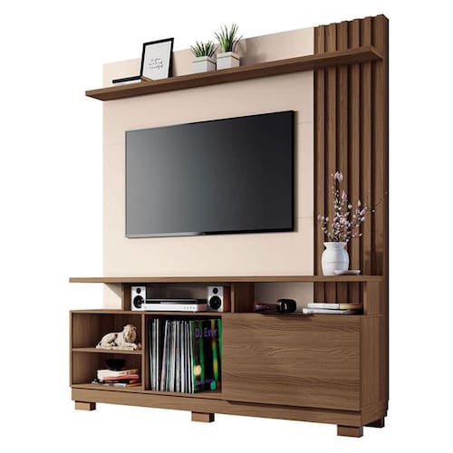 Estante Home Theater Artheo Castanho/Off White - HB Móveis