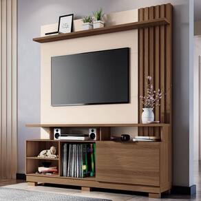 Estante Home Theater Artheo Castanho/off White Para Tv Até 55? - Hb Móveis Castanho/off White Estante Home Theater Artheo para TV até 55? - HB Móveis A Estante Home Theater Artheo possui design moderno e imponente. Projetada para TV até 55, detalhe produzido com o autêntico ripado HB Móveis, prateleira inferior com opção removível, puxador em poliestireno com acabamento na cor champanhe, prateleira superior com espessura de 25mm, 1 Porta basculante com pistão a gás e produzido em MDP e MDF com espessuras de 25mm, 15mm e 12mm. ESPECIFICAÇÕES: - Estrutura em MDP e MDF com espessuras de 25mm, 15mm e 12mm - Pintura UV - 1 Porta basculante com pistão a gás - Dobradiças metálicas - Puxador em poliestireno com acabamento na cor champanhe - Nichos - Prateleira inferior removível - Prateleira superior de 25mm - Detalhe produzido com o autêntico ripado HB Móveis - Ideal para TV até 55