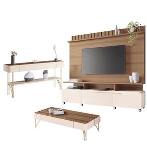 Estante Home Theater Artís e Aparador Vivant e Mesa de Centro Cadenza Castanho Off White – HB Móveis