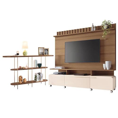 Estante Home Theater Artís Off White Castanho- HB Móveis