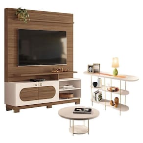 Estante Home Theater Axis Castanho Off White com Mesa de Centro Sky e Aparador Infinity Off White - Hb Móveis
