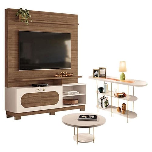Transforme sua sala em um ambiente moderno, elegante e acolhedor com a Estante Home Theater Axis Castanho Off White com Mesa de Centro Sky e Aparador Infinity Off White - HB Móveis. O conjunto une design contemporâneo, funcionalidade e acabamento sofisticado para valorizar seu espaço de convivência.