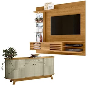 Estante Home Theater Bancada Suspensa Frizz Supreme Cumaru com Aparador Buffet Mônaco Cumaru Opala - Madetec