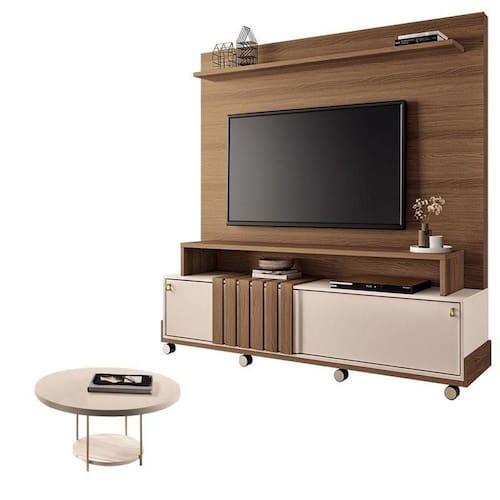 Estante Home Theater Bold Off White Castanho e Mesa de Centro sky Off White HB Móveis