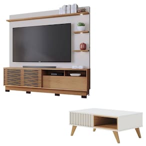 Estante Home Theater Campeche Com Pés Freijó Off White Matte e Mesa de Centro Jeri Off White Freijó - Colibri