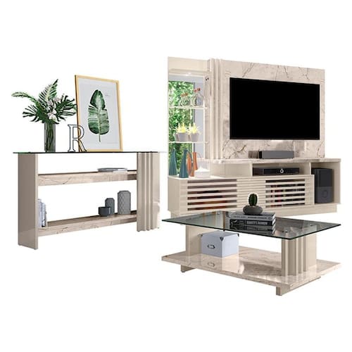 Estante Home Theater com Aparador e Mesa de Centro Frizz Plus Calacata Off White – Madetec