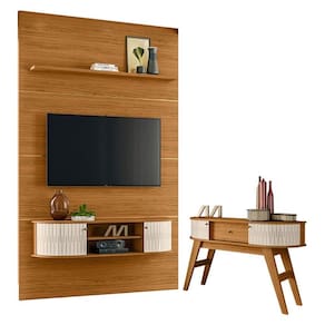 Estante Home Theater com Bancada Suspensa Monte Carlo com Aparador Estoril Naturale Off White – Madetec