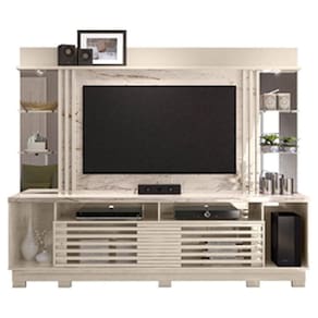 Estante Home Theater Frizz Gold com Pés Calacata Off White – Madetec