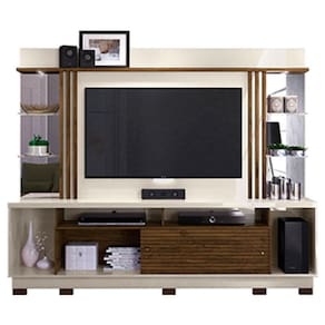 Estante Home Theater Frizz Gold com Pés Off White Savana – Madetec