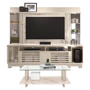 Estante Home Theater com Pés e Mesa de Centro Frizz Gold Calacata Off White – Madetec
