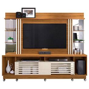 Estante Home Theater Frizz Gold com Rodízios Naturale Off White – Madetec