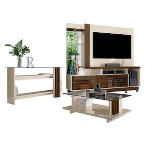 Estante Home Theater com Rodízios e Aparador com Mesa de Centro Frizz Plus Off White Savana – Madetec