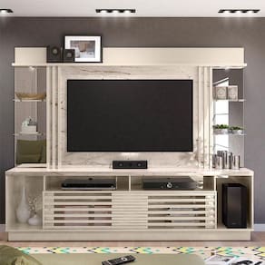 Estante Home Theater Frizz Gold Calacata Off White – Madetec