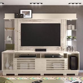 Estante Home Theater Frizz Gold com Pés Calacata Off White – Madetec