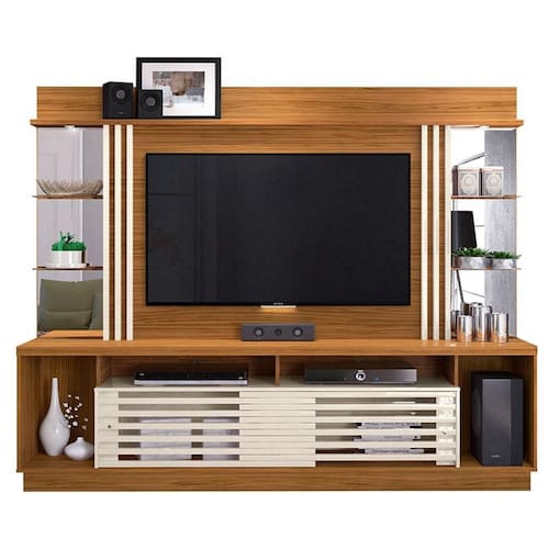 Estante Home Theater Frizz Gold Naturale Off White – Madetec
