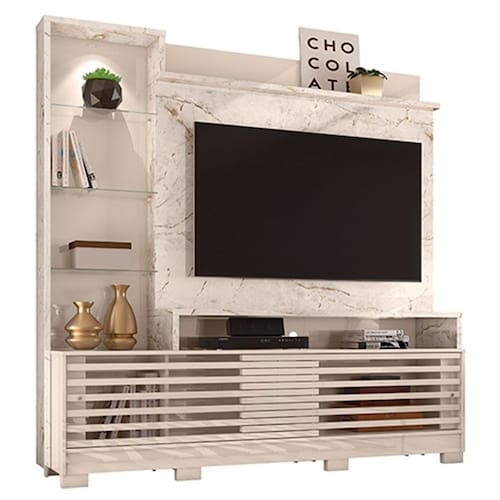 Estante Home Theater Frizz Prime com Pés Calacata Off White – Madetec