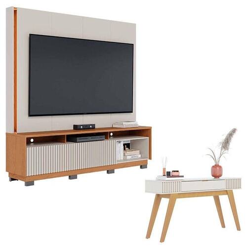 Estante Home Theater Jordão Com Pés Off White Freijó e Aparador para Sala Riviera Off White Colibri