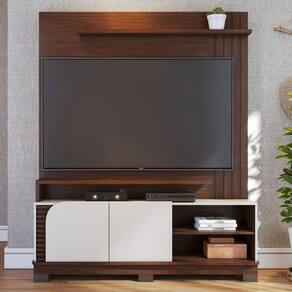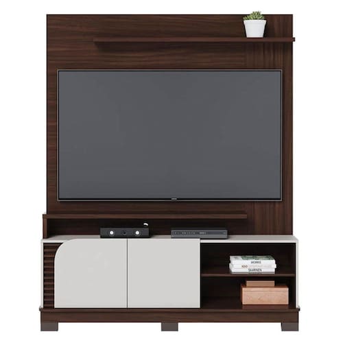 Estante Home Theater Jurerê 1.5 Nogueira Real Off White Matte – Colibri
