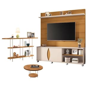 Estante Home Theater Luxor Cinamomo Off White e Aparador Infinity e Mesa de Centro sky Cinamomo- HB Móveis