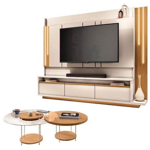 Estante Home Theater Montane Off White Cinamomo e Kit Mesa de Centro Sky Cinamomo - HB Móveis