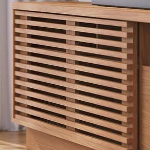Projetada para proporcionar organização, a estante para Amiche possui nichos, porta, gaveta e prateleiras que permitem que você organize e exiba seus objetos pessoais, eletrônicos, livros e coleções de forma prática e rápida. Já o detalhe dos spots de LED nas prateleiras laterais e da porta deslizante com efeito brise, a um ripado horizontal, são um charme à parte e destaca a beleza da estante.