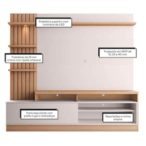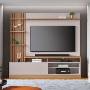 Ter um cinema no conforto de casa é possível! Vem conhecer os detalhes e se encantar com a Estante Home Theater para até 65 Polegadas Maceió Freijó/Off White, da Colibri!