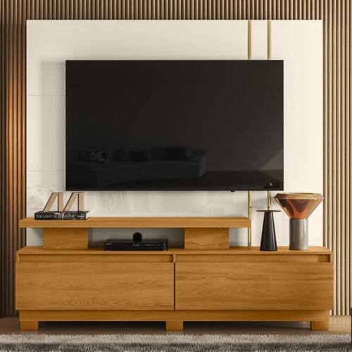 A Estante Home Theater Frizz Plus é ideal para quem busca elevar o estilo e a funcionalidade do seu ambiente, com pintura de alta qualidade através do método DIP ( Inverse Printing), oferece um acabamento impecável e duradouro. Seus perfis com acabamento em Hot Stamping adicionam um toque de elegância e modernidade. Fabricado com painéis em MDP de 15 e 40mm, o produto é robusto e resistente. Além disso, as duas gavetas com corrediças telescópicas garantem um deslizamento suave e prático, proporcionando organização e fácil acesso aos seus objetos.