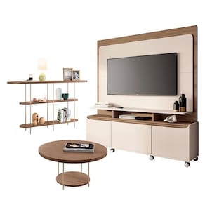 Estante Home Theater Quantum e Aparador Infinity e Mesa de Centro Sky Off White Castanho– HB Móveis